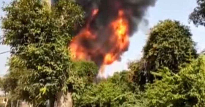 कानपुर। उत्तर प्रदेश में कानपुर के बिठूर क्षेत्र में मंधना जीटीरोड किनारे स्थित पेंट फैक्ट्री में सोमवार सुबह अचानक आग लग गयी। आग से फैक्ट्री के अन्दर मौजूद कर्मचारियों में हड़कम्प मच गया। फैक्ट्री के अन्दर मौजूद कर्मचारी किसी प्रकार जान बचाकर बाहर निकले। पुलिस सूत्रों ने यहां बताया कि बिठूर के मंधना जीटीरोड स्थित पेंट फैक्ट्री में सुबह भयानक आग लग गयी। आग इतनी विकराल थी कि फैक्ट्री में काम करने वाले कर्मचारियों में भगदड़ मच गयी। आनन फानन में सभी अपनी जान बचाकर बाहर निकले का प्रयास करने लगे। फैक्ट्री मालिक ने इसकी सूचना पुलिस व दमकल विभाग टीम को दी। सूचना पर पहुंची पुलिस ने सभी फैक्ट्री कर्मी को किसी प्रकार बाहर निकाला। जीटीरोड में जाम होने के चलते दमकल विभाग की टीम डेढ़ घंटे में देर से पहुंची सकी।