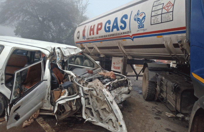 जानकारी के अनुसार सरसा से सरदूलगढ़ की ओर एक गैस टैंकर जा रहा था। सुबह करीब साढ़े सात बजे गांव पनिहारी के निकट लगाए गए बेरीकेट्स पर धुंध के कारण ट्वेरा के साथ आमने-सामने की टक्कर(Road Accident) हो गई। हादसा इतना भयावह था कि ट्वेरा सवार पाँच लोगों की मौके पर ही मौत हो गई। मृतकों की पहचान गुरचरण सिंह निवासी बछुआना, बंतराम निवासी बुढ़लाडा, हरविंद्र निवासी बुढ़लाडा, मुकेश बुढ़लाडा, चालक बब्बी सिंह निवासी धर्मगढ़ के रूप में हुई है। वहीं सुरजीत सिंह निवासी बुढ़लाडा, तरसेम निवासी बछुआना, शम्मी बुढ़लाडा, जीवन धर्मगढ़ गंभीर रूप से घायल हो गए। बताया जा रहा है कि गाड़ी सवार सभी लोग बुढ़लाडा (पंजाब) से सिरसा में नामचर्चा सुनने के लिए आ रहे थे। आसपास के लोगों ने तुरंत हादसे की सूचना पुलिस को देकर घायलों को अस्पताल में पहुंचाया।