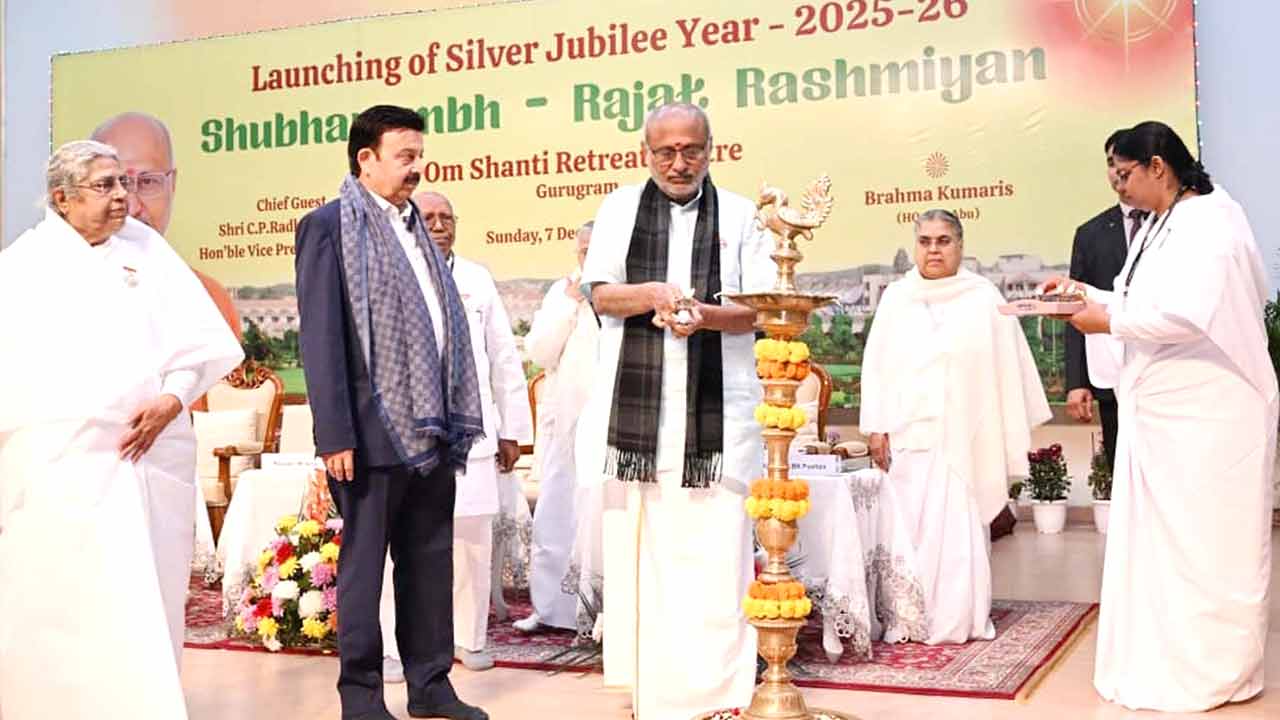 उप-राष्ट्रपति रविवार को गुरुग्राम जिला के बोहड़ाकलां में स्थित ब्रह्माकुमारी ईश्वरीय विश्वविद्यालय के ओम शांति रिट्रीट सेंटर के रजत जयंती वर्ष के रश्मियां कार्यक्रम के शुभारंभ अवसर पर बोल रहे थे। उप-राष्ट्रपति के हरियाणा आगमन पर उद्योग एवं वाणिज्य मंत्री राव नरबीर सिंह ने स्वागत किया। उप-राष्ट्रपति सी.पी. राधाकृष्णन ने दीप प्रज्ज्वलन कर कार्यक्रम का शुभारंभ करके अपने संबोधन में कहा कि ध्यान आत्मा, मन और शरीर को गहन शांति प्रदान करता है। ध्यान की अवस्था में सकारात्मक विचार उत्पन्न होते हैं और आंतरिक ऊर्जा का संचार होता है। इसी ध्यान की अनुभूति के बीच, समाज के विभिन्न क्षेत्रों एविएशन, चिकित्सा, विज्ञान, प्रशासन, सामाजिक सेवा और राजनीति से आए हुए व्यक्तित्वों से