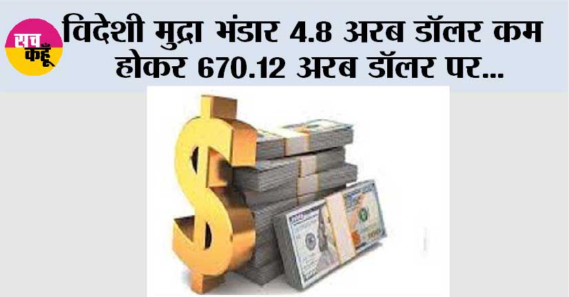 मुंबई (एजेंसी)। विदेशी मुद्रा परिसंपत्ति और स्वर्ण भंडार में भारी गिरावट होने से 09 अगस्त को समाप्त सप्ताह में देश का विदेशी मुद्रा भंडार 4.8 अरब डॉलर कम होकर 670.12 अरब डॉलर पर आ गया। वहीं, इसके पिछले सप्ताह देश का विदेशी 7.53 अरब डॉलर बढ़कर 674.93 अरब डॉलर के रिकॉर्ड स्तर पर रहा था। रिजर्व बैंक की ओर से जारी साप्ताहिक आंकड़े के अनुसार, 09 अगस्त को समाप्त सप्ताह में विदेशी मुद्रा भंडार के सबसे बड़े घटक विदेशी मुद्रा परिसंपत्ति 4.1 अरब डॉलर की गिरावट लेकर 588 अरब डॉलर पर आ गया। इसी तरह इस अवधि में स्वर्ण भंडार 86 करोड़ डॉलर के कम होकर 59.24 अरब डॉलर रह गया। वहीं, आलोच्य सप्ताह विशेष आहरण अधिकार (एसडीआर) में 12.1 करोड़ डॉलर का इजाफा हुआ और यह बढ़कर 18.3 अरब डॉलर पर पहुंच गया। इस अवधि में अंतर्राष्ट्रीय मुद्रा कोष (आईएमएफ) के पास आरक्षित निधि 1.8 करोड़ डॉलर की बढ़ोतरी के साथ 4.64 अरब डॉलर हो गया।