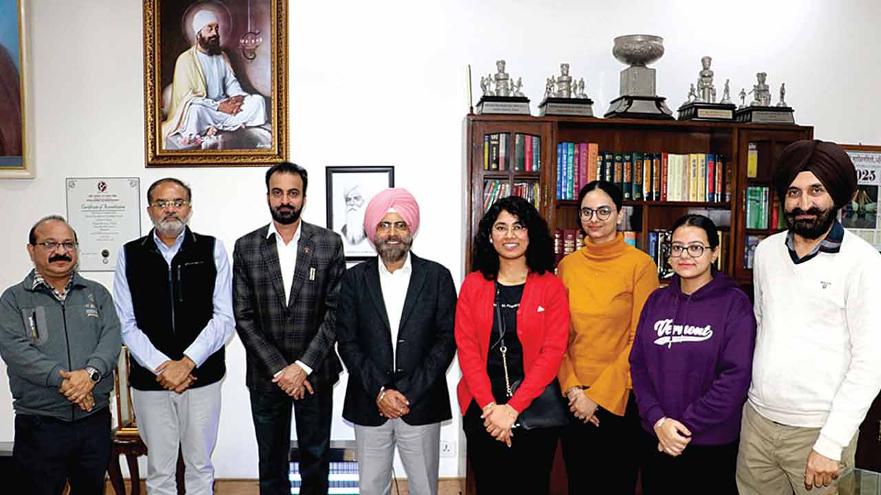 Patiala News: डॉ. जगदीप सिंह यूनिवर्सिटी कैंपस में पहुँचने पर छात्राओं का स्वागत करते हुए।