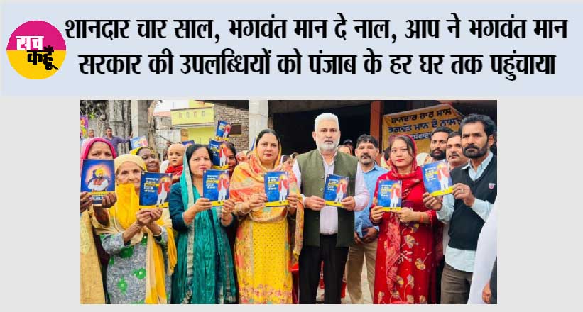 चंडीगढ़। पंजाब में मुख्यमंत्री भगवंत सिंह मान के नेतृत्व में आम आदमी पार्टी (आप) की सरकार के चार साल पूरे होने के मौके पर पार्टी ने बुधवार को “शानदार 4 साल, भगवंत मान दे नाल” नाम से एक बड़ा राज्यव्यापी जनसंपर्क अभियान शुरू किया, जिसके जरिए सरकार अपने कामकाज का रिकॉर्ड सीधे गांवों और शहरी वार्डों में जाकर लोगों तक पहुंचा रही है। इस अभियान के तहत मंत्रियों, विधायकों और हलका प्रभारियों ने एक ही दिन में करीब 1,000 गांवों और वार्डों में पहुंचकर लोगों से संवाद किया और पंजाब सरकार की प्रमुख उपलब्धियों के बारे में बताया। इस अभियान में जनता की जबरदस्त भागीदारी देखी गई और लोगों ने मुख्यमंत्री भगवंत सिंह मान के नेतृत्व में शासन और कल्याणकारी योजनाओं की डिलीवरी पर संतोष जताया।