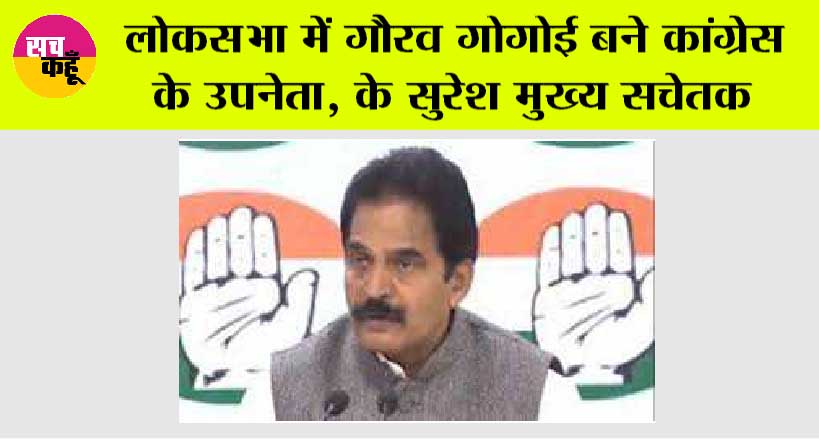 नई दिल्ली (सच कहूँ न्यूज)। कांग्रेस संसदीय दल की नेता सोनिया गांधी ने रविवार को सांसद गौरव गोगोई को लोकसभा में पार्टी का उपनेता बनाने के साथ ही पार्टी सांसद के. सुरेश को मुख्य सचेतक तथा दो सचेतक नियुक्त किए। कांग्रेस महासचिव संगठन के सी वेणुगोपाल ने आज यहां बताया कि कांग्रेस संसदीय दल की नेता सोनिया गांधी ने लोकसभा अध्यक्ष ओम बिरला को पत्र लिखकर सदन में कांग्रेस के उपनेता, मुख्य सचेतक और सचेतकों की नियुक्ति के बारे में सूचित किया है।