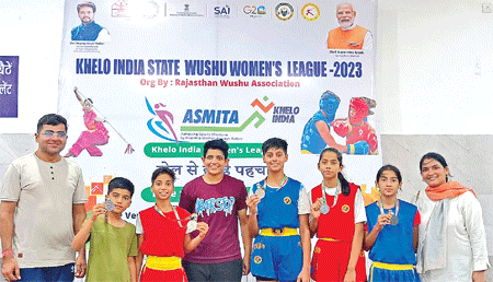शाह सतनाम जी गर्ल्स स्कूल की कोच चिंकित शर्मा ने बताया कि भारतीय खेल प्राधिकरण, भारतीय वुशू संघ व राजस्थान वुशू संघ के सयुंक्त तत्वावधान में गतदिवस मुकेश ऑडिटोरियम श्रीगंगानगर में खेलो इंडिया राज्य स्तरीय वुशू महिला लीग का आयोजन किया गया जिसमें तारानगर के शाह सतनाम जी गर्ल्स स्कूल की छात्रा हिमानी ने 30 किलो, यशिका खंडेलवाल ने 48 किलो में रजत पदक तथा अंशिका ने 27 किलो, तनवी ने 33 किलो व गायत्री ने 39 किलो में कास्य पदक जीतकर सफलता प्राप्त की। Taranagar News