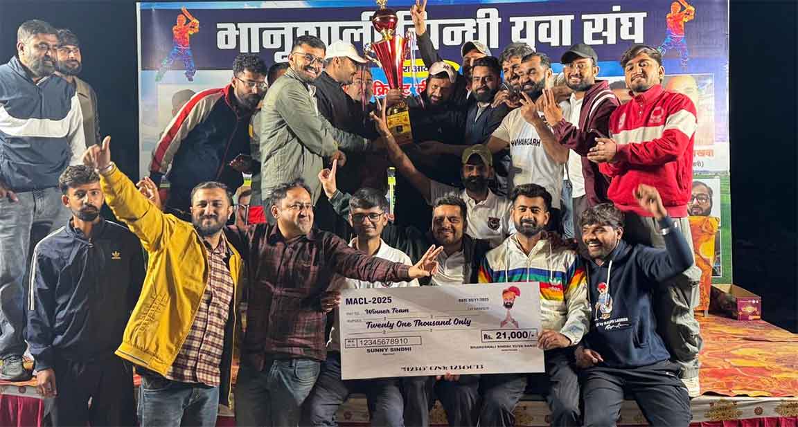 Hanumangarh Cricket News: हनुमानगढ़। भानुशाली सिंधी युवा संघ की ओर से सूरतगढ़ के एसआरके गैलेक्सीज ग्राउंड में मां आशापुरा क्रिकेट लीग-2025 (एमएजीएल) का आयोजन करवाया गया। नशामुक्त समाज का संदेश देने के मकसद से आयोजित प्रतियोगिता में हनुमानगढ़ के सुरेशिया की टीम ने विजेता का खिताब अपने नाम किया। इस प्रतियोगिता में कुल आठ टीमों हनुमानगढ़ सुरेशिया, हनुमानगढ़ भटनेर, सूरतगढ़, विजयनगर, पदमपुर, घड़साना, रावला व केसरीसिंहपुर ने हिस्सा लिया। ग्रुप ए और ग्रुप बी में कुल चार-चार टीमें शामिल की गईं। Hanumangarh News