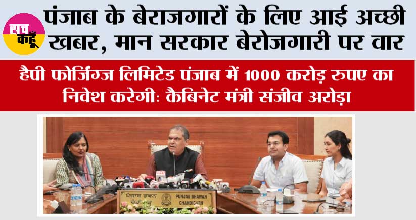Punjab:चंडीगढ़। पंजाब के औद्योगिक विकास को और प्रोत्साहन देने और राष्ट्रीय संयोजक अरविंद केजरीवाल तथा मुख्यमंत्री भगवंत सिंह मान के नेतृत्व में कारोबार करने को सुगम बनाने के उद्देश्य से कैबिनेट मंत्री संजीव अरोड़ा ने बताया कि हैपी फोर्जिंग्स लिमिटेड (एचएफएल) पंजाब के जिला लुधियाना में 1000 करोड़ रुपए का निवेश करेगी। हैपी फोर्जिंग्ज़ लिमिटेड ऑटो और इंजीनियरिंग विशेष उत्पादों के निर्माण में एक प्रमुख इकाई है तथा देश में इंजीनियरिंग मैन्युफैक्चरिंग क्षेत्र की तीसरी सबसे बड़ी कंपनी है।