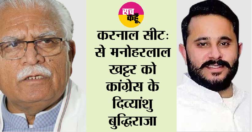 | करनाल | मनोहर लाल | भाजपा | दिव्यांशु बुद्धिराजा | कांग्रेस |