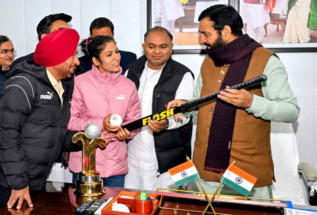 चंडीगढ़। हरियाणा के मुख्यमंत्री नायब सिंह सैनी ने हॉकी इंडिया लीग (महिला) की विजेता टीम एसजी पाइपर्स की कप्तान नवनीत कौर से संत कबीर कुटीर में भेंट की। इस अवसर पर मुख्यमंत्री ने टीम की ऐतिहासिक सफलता पर प्रसन्नता व्यक्त करते हुए नवनीत कौर को बधाई दी और उनके उत्कृष्ट व्यक्तिगत प्रदर्शन की सराहना की। Nayab Saini