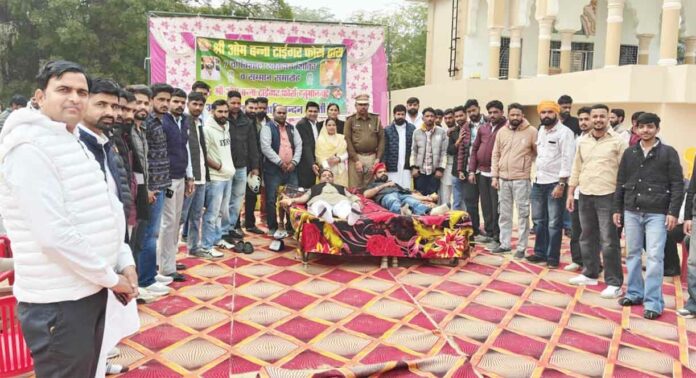 Blood Donation Camp: हनुमानगढ़। श्री ओम बन्ना टाइगर फोर्स सदस्यों की ओर से नए साल, संगठन के स्थापना दिवस और पूर्व जिलाध्यक्ष रविन्द्र सिसोदिया के जन्मदिवस के उपलक्ष्य में बुधवार को रावतसर के जोधाबास स्थित करणी माता मन्दिर परिसर में सातवें रक्तदान शिविर व सम्मान समारोह का आयोजन किया गया। शिविर में 120 से अधिक रक्तदाताओं ने रक्तदान कर नए साल की शुरूआत की। रक्त संग्रह का कार्य हनुमानगढ़ के भटनेर ब्लड बैंक सेंटर की टीम ने किया। श्री ओम बन्ना टाइगर फोर्स के संस्थापक व राष्ट्रीय अध्यक्ष माधूसिंह उदट ने शिविर का वर्चुअल शुभारंभ किया। Hanumangarh News