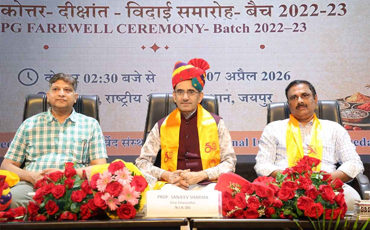 जयपुर। राष्ट्रीय आयुर्वेद संस्थान (National Institute of Ayurveda, Jaipur) में स्नातकोत्तर (पीजी) बैच 2022-23 के चिकित्सकों के लिए “स्नातकोत्तर-दीक्षांत-विदाई-समारोह” का आयोजन संस्थान के ऑडिटोरियम में किया गया। कार्यक्रम में संस्थान के चिकित्सक, शिक्षक, अधिकारियों एवं पीजी स्कॉलर्स ने उत्साहपूर्वक भाग लिया। कार्यक्रम में मुख्य अतिथि के रूप में प्रोफेसर संजीव शर्मा उपस्थित रहे। Jaipur News