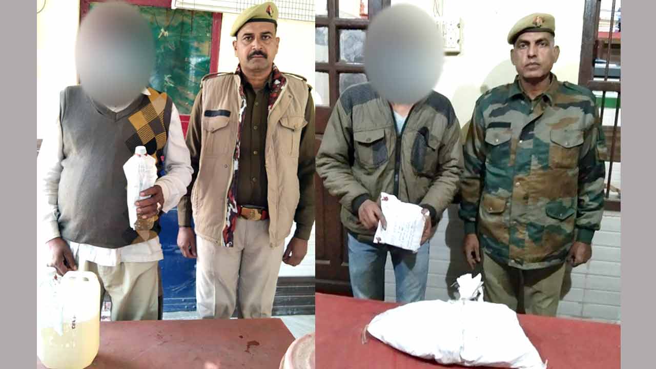 कैराना (सच कहूँ न्यूज़)। Kairana News: पुलिस ने चेकिंग के दौरान अलग-अलग स्थानों से शराब तस्करी के दो आरोपियों को गिरफ्तार किया है, जिनके कब्जे से अवैध शराब बरामद हुई है। पुलिस ने मुकदमा दर्ज करके दोनों आरोपियों का चालान कर दिया है। एसपी शामली नरेंद्र प्रताप सिंह के निर्देशानुसार अवैध शराब तस्करी पर अंकुश लगाए जाने हेतु चलाए जा रहे अभियान के तहत कोतवाली पुलिस ने रविवार रात्रि क्षेत्र में अलग-अलग स्थानों से दो शराब तस्करों को गिरफ्तार किया है। पकड़े गए दोनों आरोपियों ने पुलिस पूछताछ में अपना नाम व पता आनंद निवासी ग्राम जंधेड़ी व शाहरुख निवासी मोहल्ला दरबारखुर्द झाड़खेड़ी रोड कस्बा कैराना बताए। पुलिस ने आनंद से पांच लीटर कच्ची शराब तथा शाहरुख से 19 पव्वे देशी शराब के बरामद किये है। पुलिस ने दोनों आरोपियों के विरुद्ध सम्बंधित धाराओं में मुकदमा दर्ज करके उनका चालान कर दिया है। Kairana News