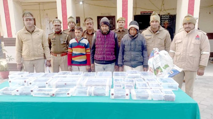 रविवार को एएसपी ओपी सिंह ने कोतवाली पर आयोजित प्रेस वार्ता के दौरान बताया कि शनिवार देर रात पुलिस टीम को क्षेत्र के गांव पावटीकलां के जंगल में एक ट्यूबेल पर अवैध तमंचा फैक्ट्री के संचालन की सूचना मिली, जिस पर त्वरित कार्रवाई करते हुए पुलिस टीम बताए गए स्थान पर छापेमारी की। मौके से पुलिस ने 12 पूर्ण निर्मित तमंचे सहित भारी मात्रा में अधबने तमंचे, कारतूस व उपकरण आदि बरामद किए। साथ ही, तीन आरोपियों को गिरफ्तार कर लिया गया, जबकि एक आरोपी मौके से फरार होने में सफल हो गया।
