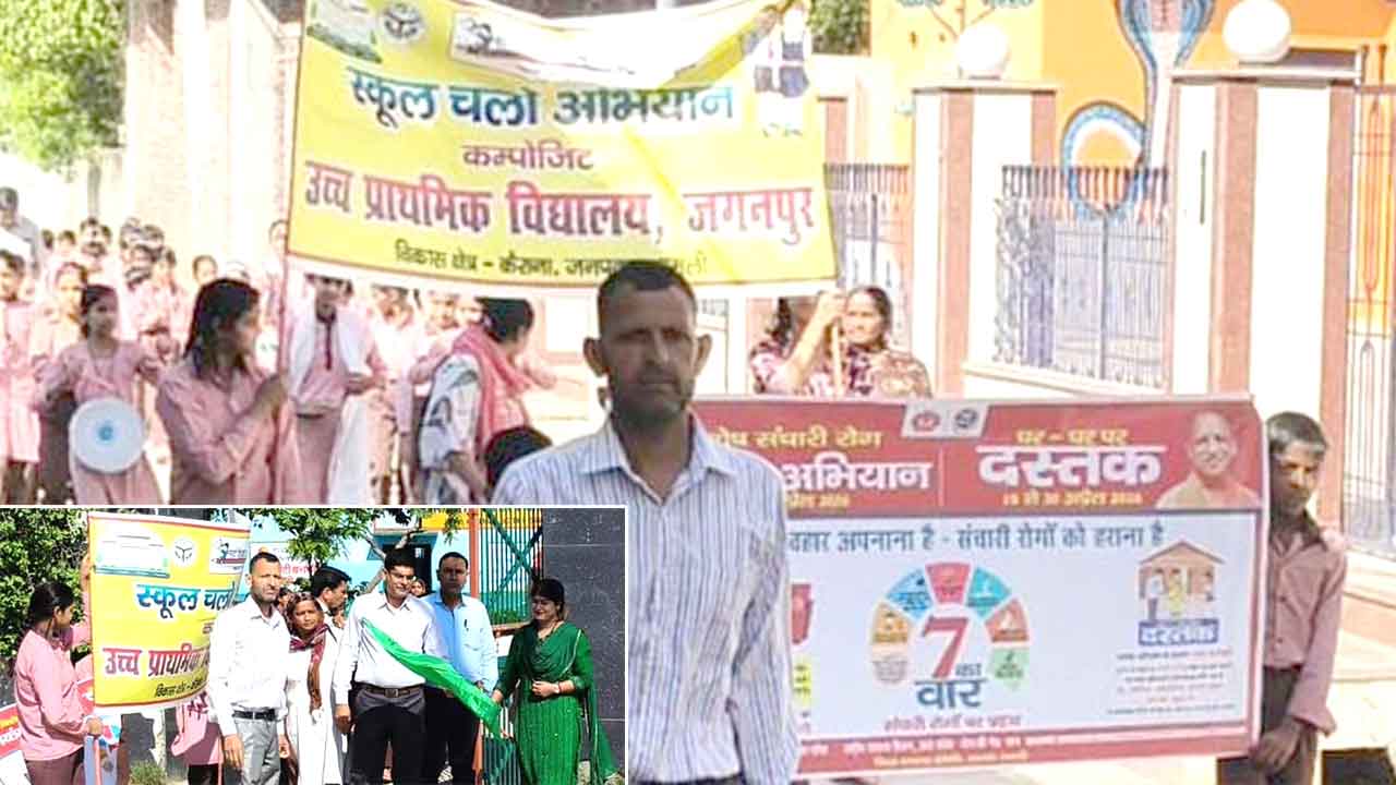 गांव जगनपुर में संविलियन विद्यालय के छात्र-छात्राओं ने रैली निकालकर शिक्षा के प्रति किया जागरूक