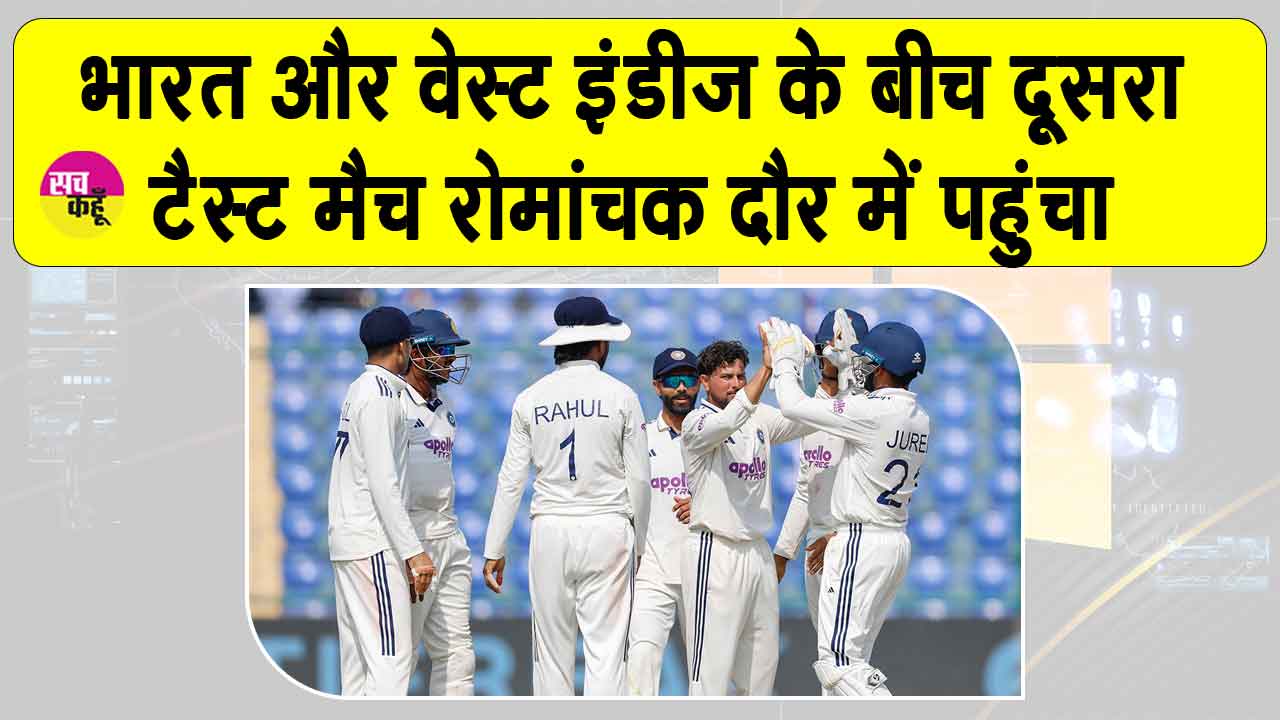 IND vs WI, 2nd Test: नई दिल्ली। दिल्ली में खेले जा रहे भारत और वेस्टइंडीज़ के बीच दूसरे टेस्ट मैच के चौथे दिन का खेल रोमांचक मोड़ पर पहुँच गया है। चाय के अंतराल तक वेस्टइंडीज़ की दूसरी पारी 361 रनों पर नौ विकेट के नुकसान पर पहुँच गई थी। इस समय जस्टिन ग्रीव्स (35 रन) और जेडन सील्स (18 रन) क्रीज़ पर डटे हुए हैं। दोनों बल्लेबाजों ने अंतिम विकेट के लिए उपयोगी साझेदारी करते हुए भारतीय गेंदबाज़ों को रोकने में सफलता हासिल की है। IND vs WI Test