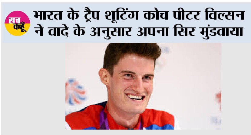 Peter Wilson भारत के ट्रैप शूटिंग कोच पीटर विल्सन ने वादे के अनुसार अपना सिर मुंडवाया