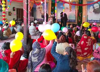 पूज्य गुरु जी के आगमन की खुशी में नाम चर्चा कर साध संगत ने मनाई खुशियां
