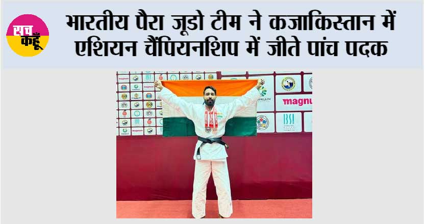 अस्ताना (कजाकिस्तान)। भारतीय पैरा जूडो टीम ने कजाकिस्तान के अस्ताना में आयोजित एशियन चैंपियनशिप में शानदार प्रदर्शन करते हुए पांच पदक जीते। यहां आयोजित हुई प्रतियोगिा में उत्तर प्रदेश के गुलशन ने जे2 -70 किग्रा वर्ग में स्वर्ण पदक जीता, मध्य प्रदेश के कपिल परमार ने जे1 – 70 किग्रा कैटेगरी में रजत पदक, हरियाणा की कोकिला ने भी जे2 -52 किग्रा वर्ग में रजत पदक और उत्तर प्रदेश के धर्मवीर वर्मा ने जे2 95 किग्रा वर्ग में कांस्य पदक जीता। पुरुषों के टीम चैंपियनशिप स्पर्धा में भारतीय पैरा जूडो पुरुष टीम ने मंगोलियाई टीम को हराकर कांस्य पदक अपने नाम किया।