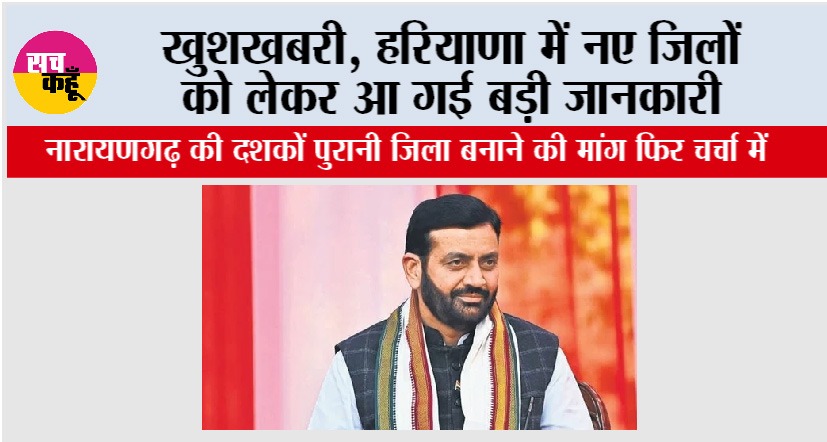 नए जिलों की सूची में अंबाला का नारायणगढ़ एक बार फिर सुर्खियों में है। लगभग पाँच लाख की आबादी वाला यह क्षेत्र लंबे समय से जिला बनाए जाने की मांग उठा रहा है। वर्तमान में नारायणगढ़ उपमंडल में 187 गाँव और 156 पंचायतें आती हैं। प्रशासनिक दृष्टि से इतनी बड़ी आबादी को अंबाला से संभालना कठिन माना जाता है। स्थानीय लोगों की मुख्य परेशानी जिला मुख्यालय तक की दूरी है।