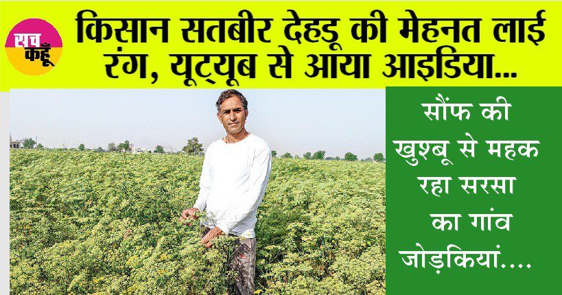सिरसा (सच कहूँ/भगत सिंह/राजेश)। Saunf ki Kheti: एक समय था जब किसान गेहूं, कपास, बाजरा व धान के अलावा और कोई खेती में रूचि नहीं दिखाते थे। लेकिन समय के साथ-साथ खेतीबाड़ी के तौर-तरीके भी बदलते जा रहे हैं। ऐसा भी एक किसान भी हैं, जो आर्गेनिक सौंफ की खेती करके लाखों रुपए कमा रहा है। किसान सतबीर देहडू, सरसा जिले में एक मात्र ऐसा किसान है जो यह खेती कर रहा है। दरअसल, सरसा (हरि.) जिले के गांव जोड़कियां में किसान सतबीर देहड़ू ने पहली बार सौंफ की खेती करने का मन बनाया। Sirsa News