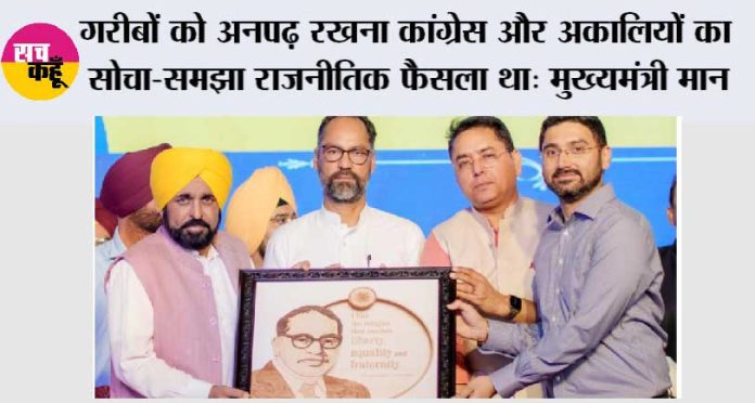 कांग्रेस और अकालियों ने गरीबों से शिक्षा छीनकर और स्कॉलरशिप का पैसा हड़पकर बाबा साहेब अंबेडकर की पीठ में छुरा घोंपा: मुख्यमंत्री भगवंत सिंह मान