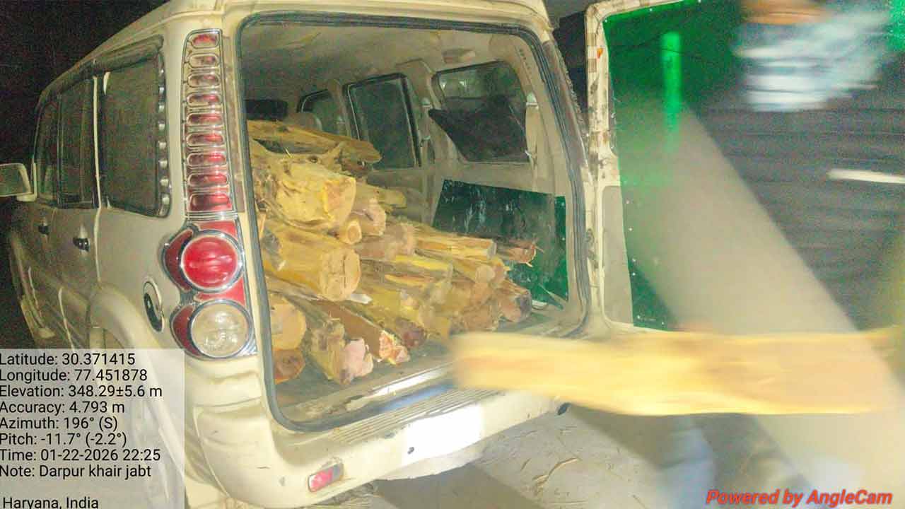 संदीप सिंह वन रक्षक द्वारा गाड़ी की चैकिंग की गई तो गाडी में खैर की लकड़ी भरी मिली व गाड़ी के पास खैर के कुछ टुकड़े पड़े मिले। गाडी व उसके पास पड़ी खैर की लकडी को स्टाफ द्वारा कब्जा विभाग लेकर वन्य जीव निरीक्षक कार्यालय कलेसर में लाया गया व पकड़ी गई गाडी मंहिंद्रा स्कोर्पियो से खैर की लकड़ी को उतारा ब बरामद हुए 25 खैर के टुकडों की लॉग लिस्ट तैयार की गई। वही आरोपी हासिम, सकील व नसीम पुत्र नवाब, नसीम पुत्र नाजर, कुरबान पुत्र लियाकत निवासी डारपुर व इस्लाम पुत्र गफूर, नूर मोहम्मद पुत्र बसीर गांव जाटांयाला व इनके साथियों द्वारा बीएनएस की धारा 303, वन्य जीव संरक्षण अधिनियम 1972 की धारा 2(1), 2(128), 2(15), 2(24 A). 2(36), 2(37), 9, 26A, 27, 29, 39, 50, 51 की उलंघ्घना करके वन्य जीवों के प्राकृतिक निवास को नष्ट करके अपराध किया है। आरोपी नूर मोहम्मद पुत्र बसौर गांव जाटांवाला के विरुद्ध पहले से ही थाना प्रताप नगर में मामला दर्ज है। जिला वन्य प्राणी विभाग के निरीक्षक की शिकायत पर विभिन्न धाराओं में मामला दर्ज कर आगामी कार्रवाई शुरू कर दी है।