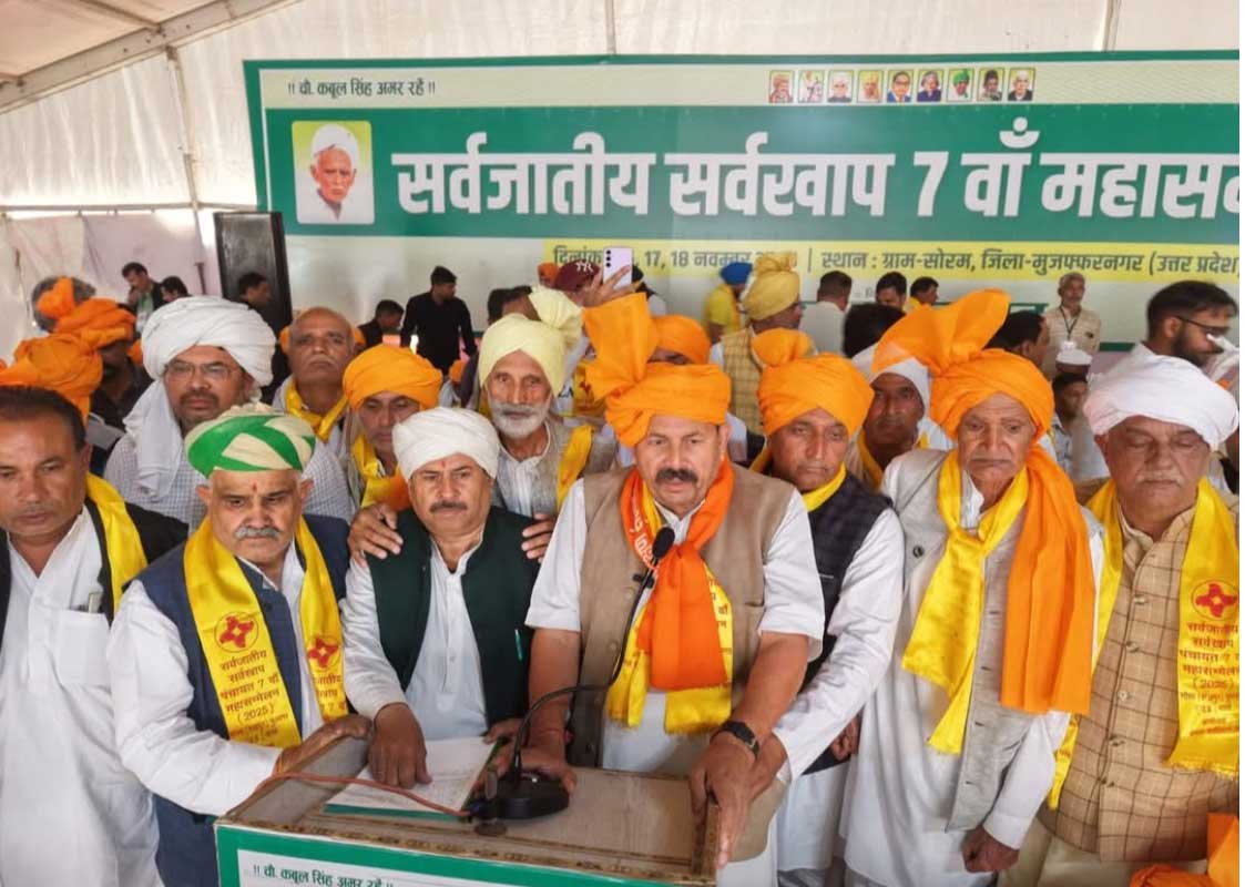 मुज़फ्फरनगर (सच कहूँ न्यूज़)। ऐतिहासिक सर्वखाप मुख्यालय गांव सोरम (शौरौं) में 15 वर्षों बाद आयोजित 16 से 18 नवम्बर 2025 तक चले तीन दिवसीय सर्वजातीय सर्वखाप पंचायत के 7 वें महासम्मेलन का भव्य समापन समाज सुधार से जुड़े 11 प्रमुख प्रस्तावों के पारित होने के साथ हुआ। देश–प्रदेश के विभिन्न क्षेत्रों से आए खाप चौधरी, सामाजिक प्रतिनिधि व गणमान्य लोगों की मौजूदगी में सर्वसम्मति से ये प्रस्ताव पारित किए गए। पंचायत ने विभिन्न सामाजिक मुद्दों, कुरीतियों और बदलते सामाजिक वातावरण पर व्यापक चर्चा के बाद इन प्रस्तावों को “समाजहित में आवश्यक कदम” बताते हुए लागू करने की अपील की।सर्वखाप मंत्री सुभाष बालियान ने प्रस्तावों को पढ़कर सुनाया।