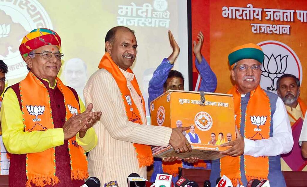 हमारा ध्येय वाक्य है ”हो चुका है आह्वान, अब बनेगा विकसित राजस्थान” जिसके तहत हमने हमारे सभी विधायक, सांसद और पदाधिकारियों के सुझाव भी लिए हैं। इन सभी के आधार पर एक मजबूत और प्रदेश के सर्वांगीण विकास के उद्देश्य से भाजपा का संकल्प पत्र तैयार होगा। प्रेसवार्ता के दौरान चुनाव प्रबंधन समिति संयोजक नारायण पंचारिया, सह-संयोजक ओंकार सिंह लखावत, राज्यसभा सांसद घनश्याम तिवाड़ी, भाजपा की राष्ट्रीय सचिव डॉ. अल्का सिंह गुर्जर, भाजपा प्रदेश महामंत्री मोतीलाल मीणा, पूर्व विधानसभा उपाध्यक्ष राव राजेन्द्र सिंह, प्रदेश मंत्री पिकेंश पोरवाल और प्रदेश प्रवक्ता पंकज मीणा मौजूद रहे। Jaipur News