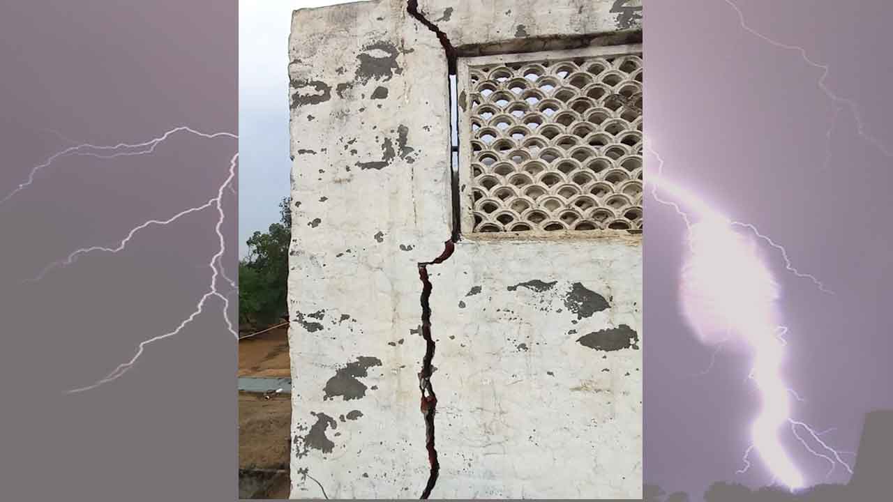 चोपटा (सच कहूँ न्यूज़)। Lightning Fell जिले के गाँव तरकांवाली में वीरवार रात को आसमानी बिजली गिरने से एक घर क्षतिग्रस्त हो गया। इस हादसे में बिजली के उपकरण जलने से नुकसान हुआ है। वहीं मकान में दरारें आ गई और एक युवती घायल हो गई। जिससे पूरे गाँव में दहशत का माहौल बन गया। यह घटना चंदुराम वर्मा के घर पर हुई, जहां बिजली गिरने से मकान में जगह-जगह गहरी दरारें पड़ गईं। चंदु राम ने बताया कि आसमानी बिजली घर की पानी की टंकी को चीरते हुए सीधे चौबारे पर गिरी, जिससे भवन चारों ओर से क्षतिग्रस्त हो गया। बिजली गिरने की तीव्रता इतनी अधिक थी कि घर के सभी बिजली उपकरण—पंखा, कूलर, एसी, फ्रिज और एलसीडी—पूरी तरह जलकर नष्ट हो गए, जिससे लाखों रुपये का अतिरिक्त नुकसान हुआ है। Chopta News