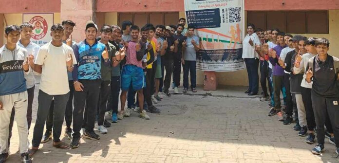 गाजियाबाद(सच कहूँ /रविंद्र सिंह)। राजधानी दिल्ली से सटे गाजियाबाद के महामाया स्पोर्ट्स स्टेडियम में प्रभारी खेल अधिकारी गाजियाबाद, पूनम बिश्नोई ने सभी खिलाड़ियों से 26 अप्रैल को पहले मतदान फिर जलपान करने की अपील की गई। साथ ही सभी से यह भी अपील की गयी कि अपनी आस-पास की हाईराइज सोसाइटी में जाकर सभी खिलाड़ियों और अन्य लोगों से भी अपील करें की वह मतदान जरूर करें। पाने सभी पड़ोसियों को भी मतदान के लिए प्रोत्साहन (Voting Awareness) करें तथा पहले मतदान फिर जलपान इसका संकल्प भी दिलाया गया।