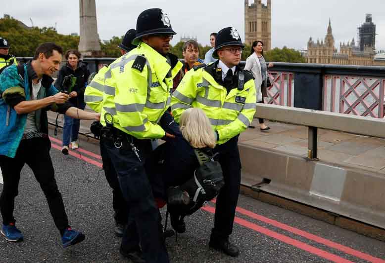 मास्को। लंदन पुलिस ने कहा कि उसने सार्वजनिक विरोध प्रदर्शन के नियमों का उल्लंघन करने वाले 90 प्रदर्शनकारियों को गिरफ्तार किया है। पुलिस ने ट्वीट कर कहा, “मंगलवार शाम छह बजे तक 90 लोगों को सार्वजनिक आदेश की अवमानना करने, राजमार्ग और पुलिस को बाधित करने और एक आपातकालीन कार्यकर्ता पर हमला करने के जुर्म में गिरफ्तार किया गया है।” रिपोर्ट के मुताबिक पर्यावरण समूहों ने ब्रिटेन में दो सप्ताह के विरोध-प्रदर्शन की शुरुआत की है जिसके मद्देनजर लंदन में मंगलवार को ब्रिटेन की संसद के सामने सैकड़ों लोग इकट्ठा हुए। प्रदर्शनकारियों ने कहा कि पार्लियामेंट स्क्वायर में धरना प्रदर्शन का मकसद सरकार का जलवायु परिवर्तन के मुद्दे की ओर ध्यान आकर्षित कराना था।