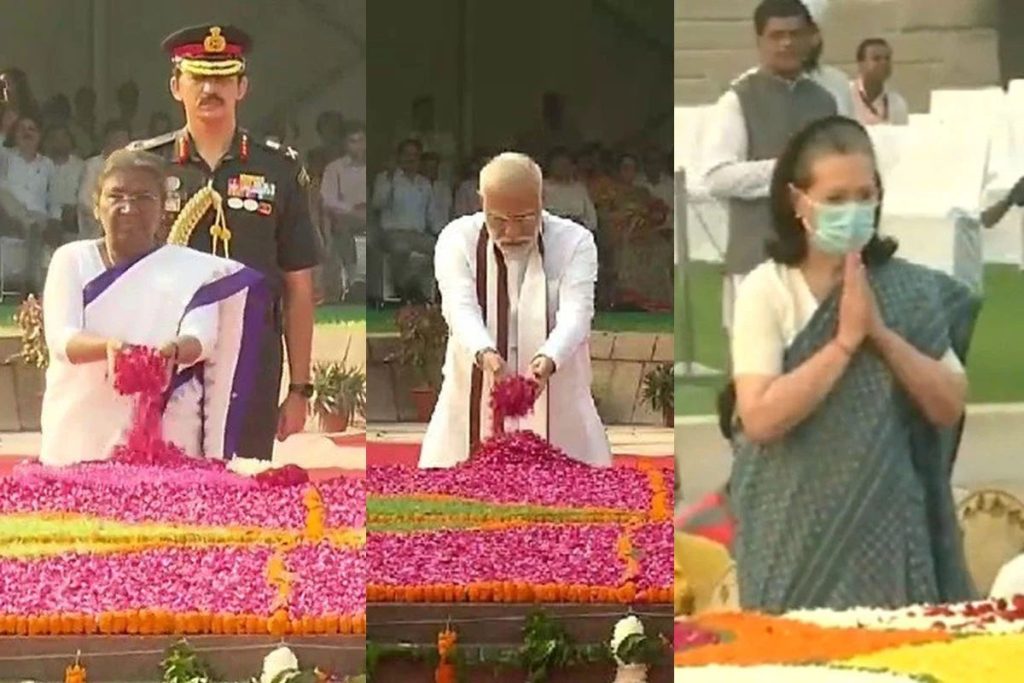 कांग्रेस अध्यक्ष सोनिया गांधी, पूर्व अध्यक्ष राहुल गांधी, राज्यसभा में विपक्ष के नेता एवं कांग्रेस अध्यक्ष चुनाव में उम्मीदवार मल्लिकार्जुन खडगे ने राष्ट्रपिता महात्मा गांधी को उनकी जयंती पर श्रद्धांजलि अर्पित की। श्रीमती गांधी ने प्रात: राजघाट जाकर राष्ट्रपिता की समाधि पर पुष्प अर्पित किए और गांधी जी को श्रद्धांजलि दी। राजघाट पर सर्वधर्म सभा में भी शामिल होकर उन्होंने बापू को श्रद्धा सुमन अर्पित किए। भारत जोड़ो यात्रा की अगुवाई कर रहे राहुल ने ट्वीट कर गांधी जी को श्रद्धांजलि अर्पित करते हुए कहा “बापू ने हमें सत्य और अहिंसा के पथ पर चलना सिखाया। प्रेम, करुणा, सद्भाव और मानवता का अर्थ समझाया। आज गांधी जयंती पर हम प्रण लेते हैं, जिस तरह उन्होंने देश को अन्याय के खिलाफ एकजुट किया था वैसे ही अब हम भी अपना भारत जोड़ेंगे।” खडगे ने भी श्रीमती गांधी के साथ राजघाट पहुंचकर बापू की समाधि स्थल पर पुष्प अर्पित किए।