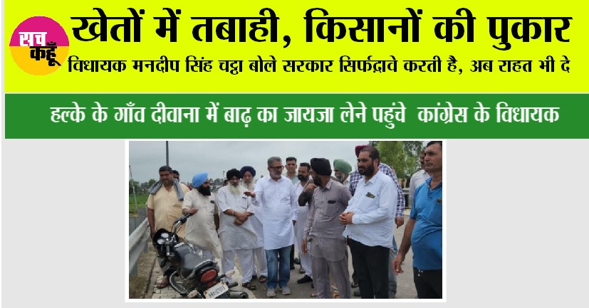 पिहोवा (सच कहूँ न्यूज़)। Pehowa News: हल्के के गाँव दीवाना में बाढ़ का जायजा लेने पहुंचे कांग्रेस के विधायक मनदीप सिंह चट्ठा। मनदीप चट्ठा लगातार बाढ़ प्रभावित गांव का दौरा कर रहे हैं और लोगों से मिलकर उनकी समस्याओं को सुन रहे हैं और अधिकारियों को निर्देश दे रहे हैं कि वह लोगों की हर सम्भव सहायता करें। लगातार बारिश से किसानों की कमर टूट चुकी है। Pehowa News