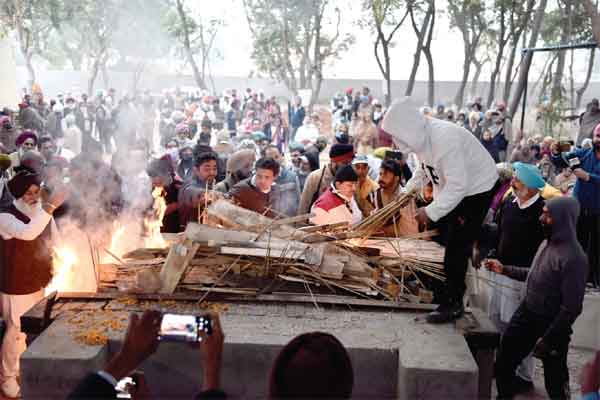 शव को काफिले में रूप में भगता भाईका की शमशान घाट में लेकर गई साध-संगत
