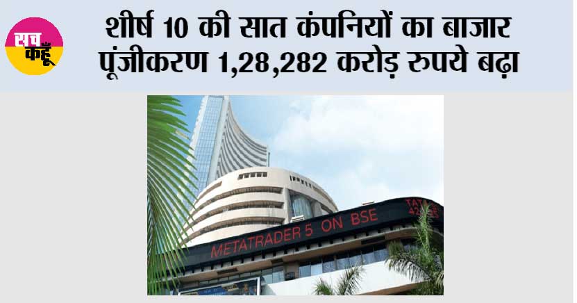 मुंबई (एजेंसी)। घरेलू शेयर बाजारों में पिछले सप्ताह प्रमुख सूचकांकों में रही तेजी के कारण बीएसई की शीर्ष 10 में से सात कंपनियों का बाजार पूंजीकरण 1,28,282 करोड़ रुपये बढ़ गया जबकि अन्य तीन का 14,015 करोड़ रुपये घट गया। विभिन्न क्षेत्रों में कारोबार करने वाली रिलायंस इंडस्ट्रीज का बाजार पूंजीकरण (एमकैप) सप्ताह के दौरान 36,673 करोड़ रुपये बढ़ा। दूरसंचार सेवा प्रदाता भारती एयरटेल का एमकैप 36,579 करोड़ रुपये और सूचना प्रौद्योगिकी क्षेत्र की इंफोसिस का 17,490 करोड़ रुपये बढ़ा।