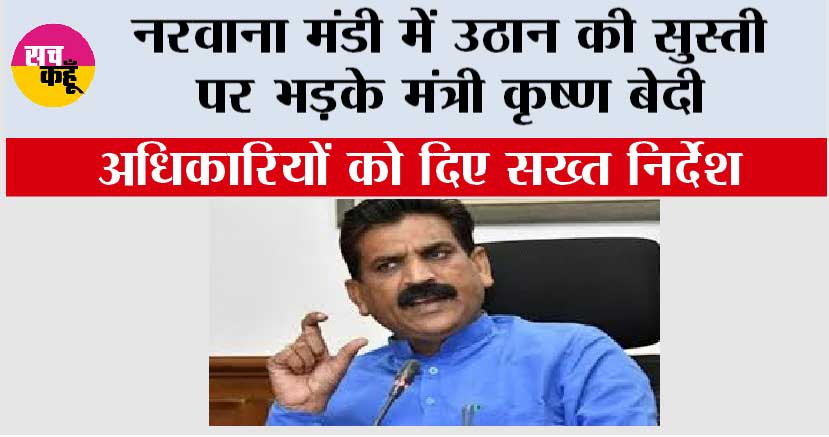 नरवाना मंडी में उठान की सुस्ती पर भड़के मंत्री कृष्ण बेदी, अधिकारियों को दिए सख्त निर्देश