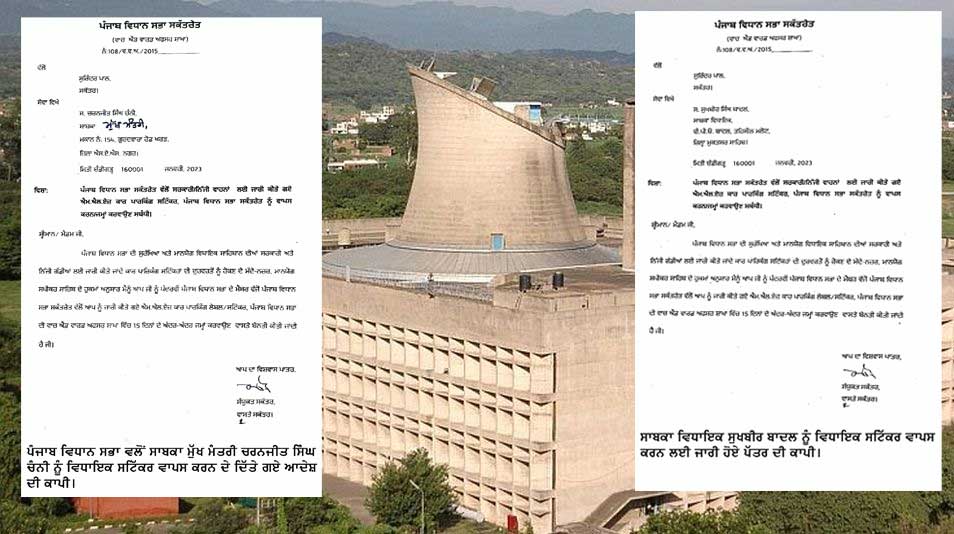 चंडीगढ़। पंजाब के पूर्व विधायकों द्वारा विधायक रहते हुए मिले वीवीईपी स्टीकरों का न सिर्फ गलत इस्तेमाल किया जा रहा है, बल्कि इन विधायक स्टीकरों द्वारा गैर कानूनी कार्य भी किए जा रहे हैं, जिसे देखते पंजाब विधानसभा ने विधायक रहते हुए मिले स्टीकरों को पूर्व विधायकोंं से वापिस मंगवा लिया है। पूर्व विधायकों में सुखबीर सिंह बादल व प्रकाश सिंह बादल से लेकर चरनजीत सिंह चन्नी सहित कुल 90 पूर्व विधायक शामिल हैं, जिनको विधायक से पूर्व विधायक हुए तो लगभग एक साल हो चुका है लेकिन विधायकी वाला वीवीआईपी स्टीकर वापिस देने को वह तैयार नहीं है। इसलिए पंजाब विधानसभा ने बकायदा पत्र जारी करते इन पूर्व विधायकों को तुरंत स्टीकर जमा करवाने के आदेश जारी किए हैं। इसके लिए पंजाब विधानसभा ने 15 दिनों का समय दिया है।