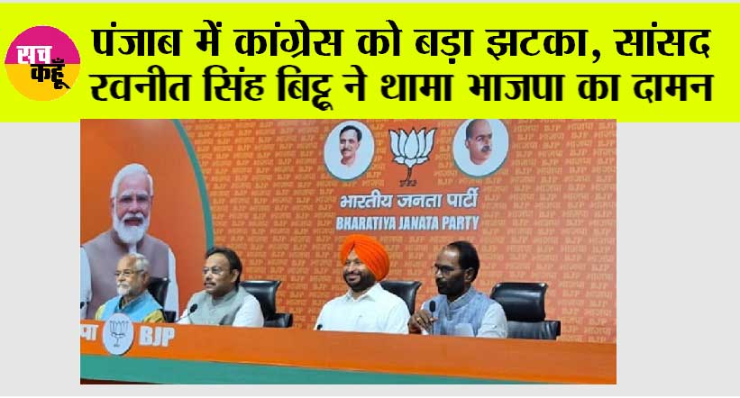 Ravneet Singh Bittu joins BJP: चंडीगढ़ (सच कहूँ न्यूज)। पंजाब से बड़ी खबर सामने निकल कर आ रही है। मीडिया रिपोर्ट के अनुसार, पंजाब में कांग्रेस को बड़ा झटका लगा है। जानकारी के अनुसार, लुधियाना से सांसद रवनीत सिंह बिट्टृ ने भाजपा का दामन थाम लिया है। रवनीत दिवंगत पूर्व सीएम बेअंत सिंह के पोते हैं। उन्हें राहुल गांधी का करीबी माना जाता था। Punjab News