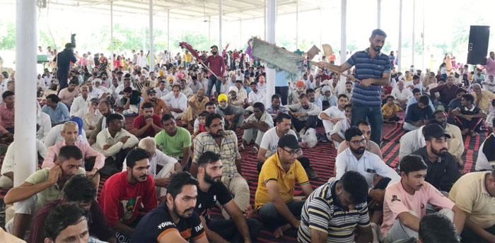 बुधरवाली (राजस्थान)। पूज्य गुरु संत डॉ. गुरमीत राम रहीम सिंह जी इन्सां के पावन अवतार माह के उपलक्ष्य में डेरा सच्चा सौदा मौजपूर धाम, बुधरवाली (राजस्थान) आश्रम में विशाल नामचर्चा का आयोजन किया गया। नामचर्चा में भारी तादाद में साध-संगत ने शिरकत की। नामचर्चा की शुरूआत ‘धन-धन सतगुरु तेरा ही आसरा’ का नारा लगा कर की। इस अवसर पर साध-संगत ने मानवता भलाई के कार्य किए।
