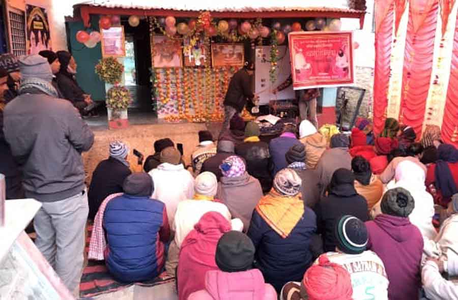 सिरहा/नेपाल। (सच कहूँ न्यूज) पूजनीय परम पिता शाह सतनाम सिंह जी महाराज के पावन अवतार माह के उपलक्ष्य में गोलबाजार जिला सिरहा नेपाल में ब्लॉक स्तरीय नामचर्चा धूमधाम से संपन्न हुई। नामचर्चा का लाभ उठाने के लिए बड़ी संख्या में साध-संगत मौजूद रही। बेनती भजन के साथ प्रारंभ हुई इस नामचर्चा में खुशी प्रथाए भजनों एवं कव्वालियों के जरिए ऐसी मस्ती बिखेरी की पंडाल खुशी से झूम उठा। उपस्थित साध-संगत को पावन अवतार माह की बधाई देते हुए ब्लॉक भंगीदास ने साध-संगत से कहा कि पूज्य गुरु जी के मार्गदर्शन में जो मानवता भलाई कार्य चलाए जा रहे हैं उन्हें बढ़-चढ़कर गति दें। नामचर्चा के दौरान साध-संगत ने नशा के खिलाफ लोगों को जागरूक करने का संकल्प लिया।