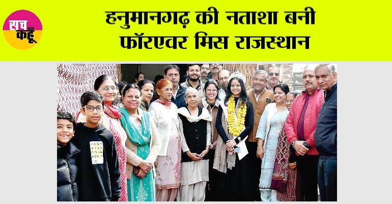 हनुमानगढ़ (सच कहूँ न्यूज)। जयपुर में आयोजित फॉरएवर ग्रैंड फिनाले सीजन-5 में हनुमानगढ़ की डॉ. नताशा मिड्ढा ने शानदार प्रदर्शन करते हुए फॉरएवर मिस राजस्थान का खिताब अपने नाम किया। इस प्रतिष्ठित ब्यूटी प्रेजेंट में देश के लगभग सभी राज्यों से सैकड़ों प्रतिभागियों ने हिस्सा लिया। प्रतियोगिता में डॉ. नताशा मिड्ढा की जीत की खबर जैसे ही हनुमानगढ़ पहुंची, शहर में खुशी की लहर दौड़ गई। शनिवार को डॉ. नताशा के हनुमानगढ़ पहुंचने पर शहरवासियों, परिजनों और शुभचिंतकों की ओर से ढोल-नगाड़ों के साथ स्वागत किया गया। इस मौके पर सुमन चावला ने कहा कि फॉरएवर मिस राजस्थान का टाइटल जीतने वाली डॉ. नताशा मिड्ढा में हर गुण विद्यमान है। उन्होंने संदेश देते हुए कहा कि बेटियां भी आज किसी क्षेत्र में बेटों से कम नहीं बल्कि उनसे बढ़कर कर रही हैं।