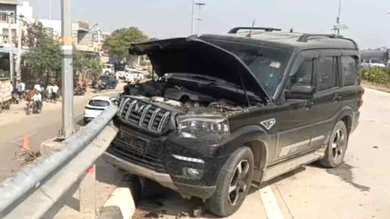 रेलिंग से टकराई स्कॉर्पियो युवक की बाइक छीनकर भागे