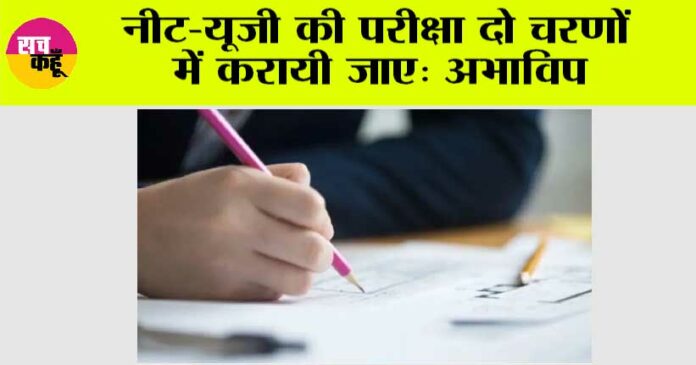 NEET-UG Exam: नई दिल्ली (सच कहूँ न्यूज)। अखिल भारतीय विद्यार्थी परिषद (अभाविप) ने राष्ट्रीय पात्रता सह प्रवेश परीक्षा (नीट-यूजी) को दो चरणों में कराने की गुरुवार को मांग की। अभाविप के एक प्रतिनिधिमंडल ने आज यहां राष्ट्रीय परीक्षा एजेंसी (एनटीए) में सुधार के लिए गठित उच्च स्तरीय समिति के अध्यक्ष डॉ. के. राधाकृष्णन से मुलाकात की और उन्हें अपने सुझाव सौंपे। अभाविप ने एनटीए की कार्यप्रणाली तथा संयुक्त प्रवेश परीक्षा (जेईई),नीट और विश्वविद्यालय अनुदान आयोग-राष्ट्रीय पात्रता परीक्षा (यूजीसी-नेट) जैसी विभिन्न परीक्षाओं में सुधार के विषय को प्रमुखता से उठाया है।