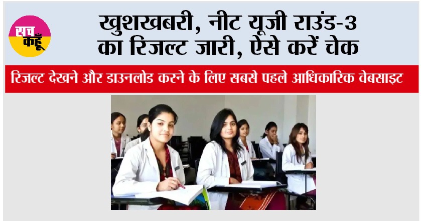 नई दिल्ली (सच कहूँ न्यूज़)। NEET UG 2025: मेडिकल काउंसलिंग कमेटी (एमसीसी) ने आज (22 अक्टूबर) राष्ट्रीय पात्रता सह प्रवेश परीक्षा, स्नातक (नीट यूजी) 2025 काउंसलिंग के लिए राउंड 3 सीट आवंटन सूची जारी कर दी है। उम्मीदवार आधिकारिक वेबसाइट mcc.nic.in पर राउंड 3 का परिणाम देख सकते हैं। परिणाम में किसी भी विसंगति की सूचना 22 अक्टूबर, 2025 शाम 6 बजे तक डीजीएचएस के एमसीसी को ईमेल आईडी (mccresultquery@gmail.com) पर ईमेल के माध्यम से दी जा सकती है, जिसके बाद अनंतिम परिणाम को ‘अंतिम’ माना जाएगा।