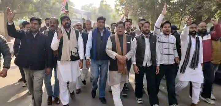 Congress Protests: हनुमानगढ़। सतीपुरा में निर्माणाधीन रेलवे ओवरब्रिज के डिजाइन में फेरबदल के खिलाफ अब कांग्रेस भी सड़क पर उतर आई है। इसके खिलाफ मंगलवार को कांग्रेस कार्यकर्ताओं ने जिला कांग्रेस कमेटी के बैनर तले जिला कलक्ट्रेट में विरोध-प्रदर्शन किया और मांगों के संबंध में मुख्यमंत्री के नाम जिला कलक्टर को ज्ञापन सौंपा। इससे पहले जिला कलक्टर से मिलने के लिए पांच व्यक्तियों को भेजने की बात को लेकर कार्यकर्ताओं की कलक्ट्रेट में तैनात पुलिस कर्मियों के साथ बहस हो गई। Hanumangarh News