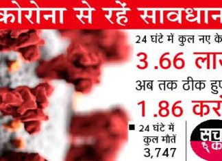 कोरोना की रफ्तार में थोड़ी गिरावट, देश में 3.66 लाख आए नए मामले, 3.53 लाख हुए ठीक