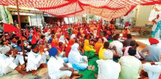 मांगों को लेकर मजदूरों ने कैबिनेट मंत्री अरोड़ा की कोठी समक्ष लगाया पक्का मोर्चा