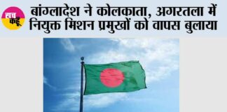 बांग्लादेश ने कोलकाता, अगरतला में नियुक्त मिशन प्रमुखों को वापस बुलाया
