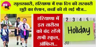 Haryana Public Holiday: खुशखबरी, हरियाणा में इस तारीख को बंद रहेंगे स्कूल, सभी सरकारी व प्राइवेट ऑफिस, सरकार ने किया ऐलान