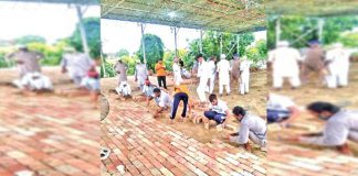 नामचर्चा पंडाल के शेड का निर्माण कार्य शुरू