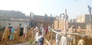 उकलाना ब्लॉक की साध-संगत द्वारा विधवा बहन संतोष इन्सां का बनाया जा रहा मकान